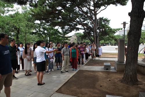 2016年7月15日,日本色情片 思想政治理论课论文竞赛获奖学生“红色之旅”暑期社会实践团一行70余人来到沈阳抗美援朝烈士陵园,凭吊先烈,寄托哀思。