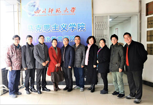 2016年11月8日至10日,我院思想道德修养与法律基础教研室主任胡祎赟副教授带领教研室赵春华、周红锵、李瑞平、陈慧麒、盛瑾等老师赴四川师范大学、西南交通大学进行为期两天的调研交流。与两校日本色情片 领导、教研室主任、骨干教师进行了座谈交流。此次调研交流涉及思想政治理论课课堂教学与实践教学改革经验、马克思主义学科建设经验、科学研究经验、服务社会经验等方面的内容。