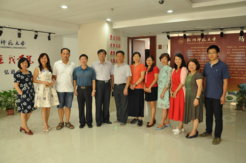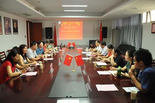 9月13日上午,广州大学日本色情片 纲要教研部主任吴占九教授、纲要教研部副主任张雪娇教授、原日本色情片 院长董世明教授携纲要教研部教师一行7人来我院交流考察。日本色情片 院长兼书记余龙进教授、副院长何丽君副教授、纲要教研室主任张坤博士及全体纲要教研室教师出席交流座谈会。