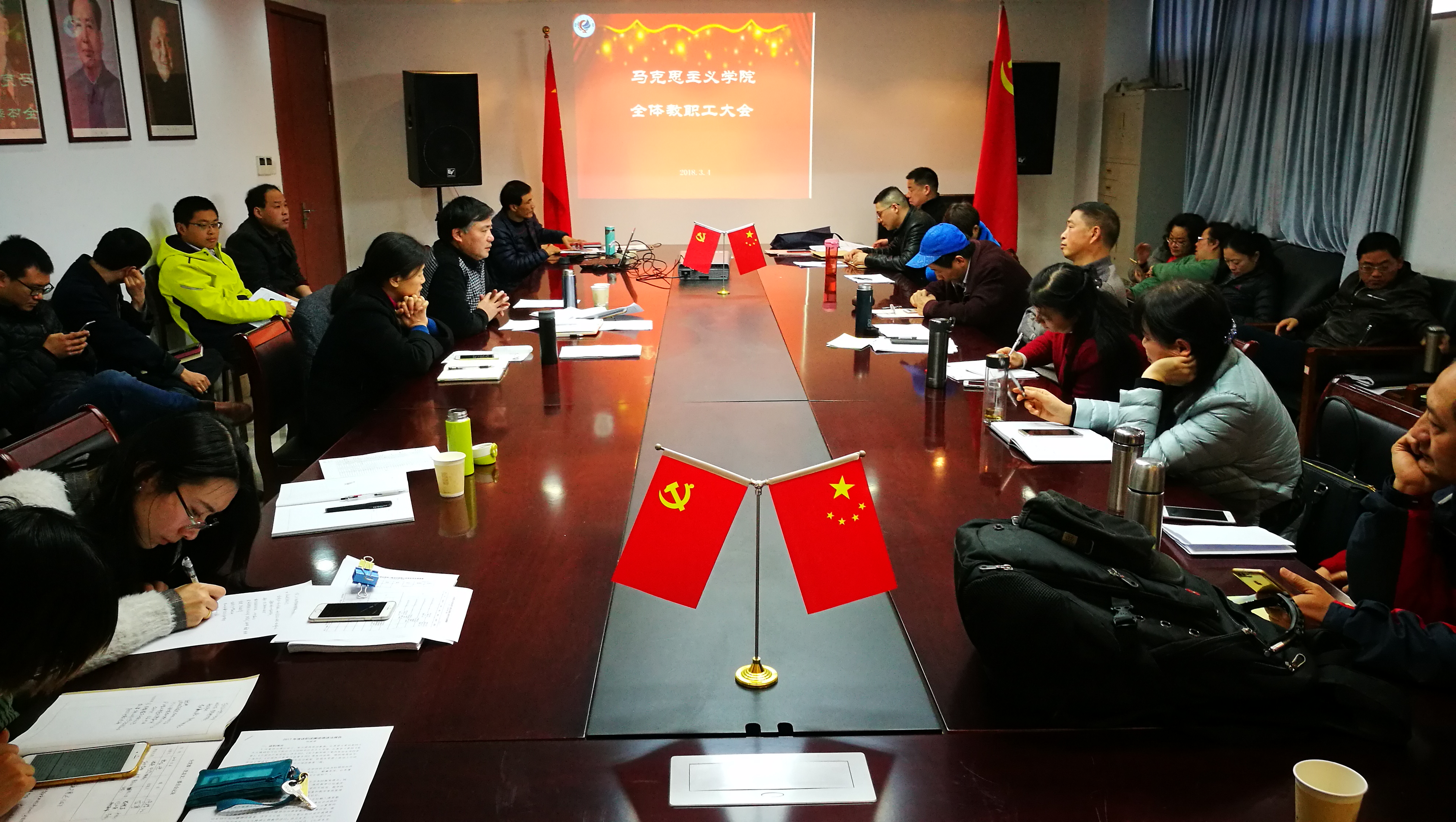 3月4日,日本色情片 召开了全院教职工大会,会议围绕“2017年度述职述廉述德述法报告”、“2018年工作要点”和“重点马院建设方案”三个议题进行。学院党总支书记、院长余龙进主持召开了会议,日本色情片 副院长何丽君及全体教职员工参加了会议。干部测评小组成员党委组织部副部长诸英、纪委监察办副处长王骏、人文学院党委副书记管庆江、组织部科员许文东参加马院领导班子测评工作。