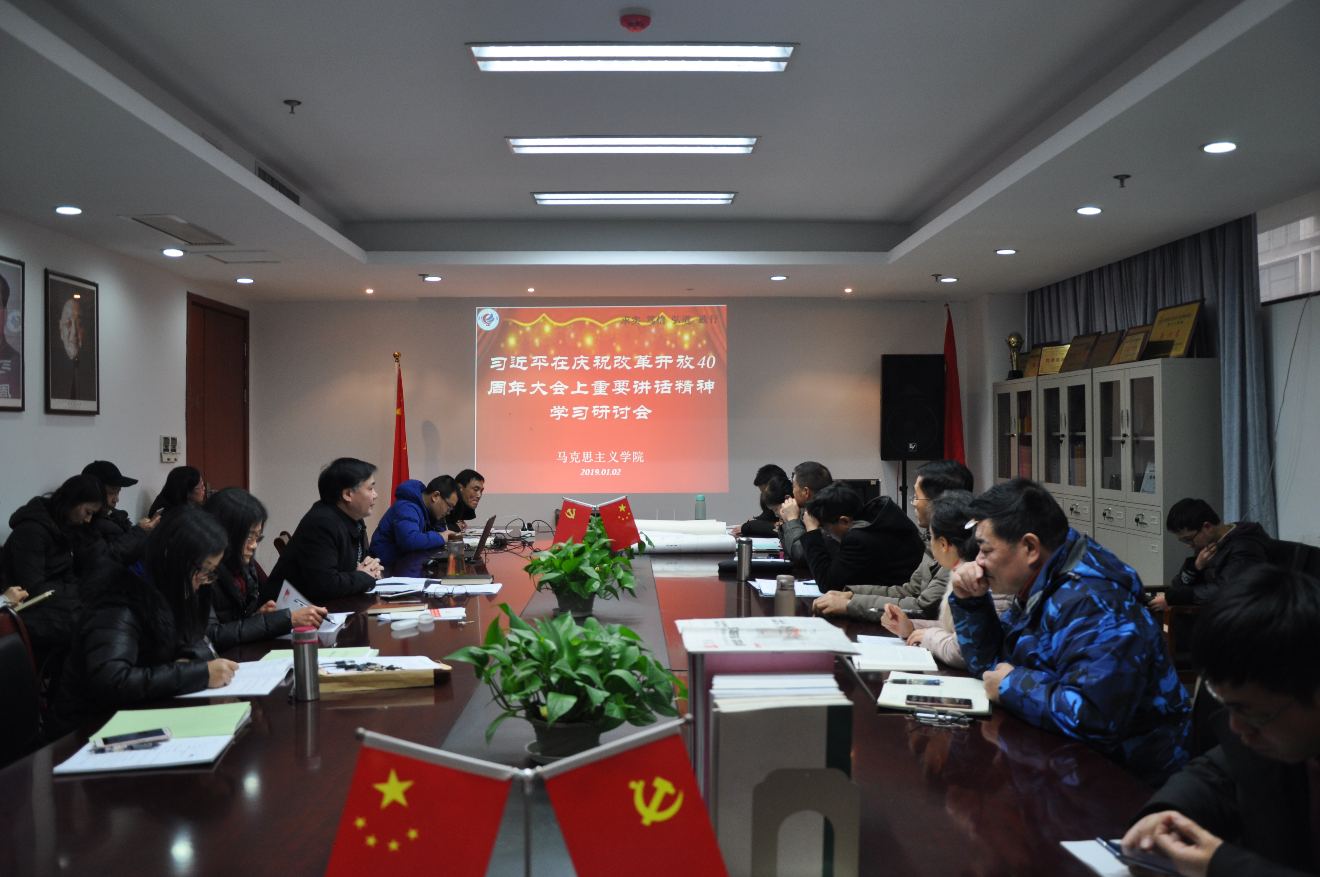 2019年1月2日下午,日本色情片 师生齐聚仓前校区恕园1-306,集中学习研讨习近平总书记在庆祝改革开放40周年大会上的重要讲话精神(以下简称“习近平总书记12.18重要讲话精神”),本次专题学习研讨会由罗一华老师担任主讲人,多位师生畅谈学习心得。学院党总支书记、院长余龙进主持专题学习会并讲话。