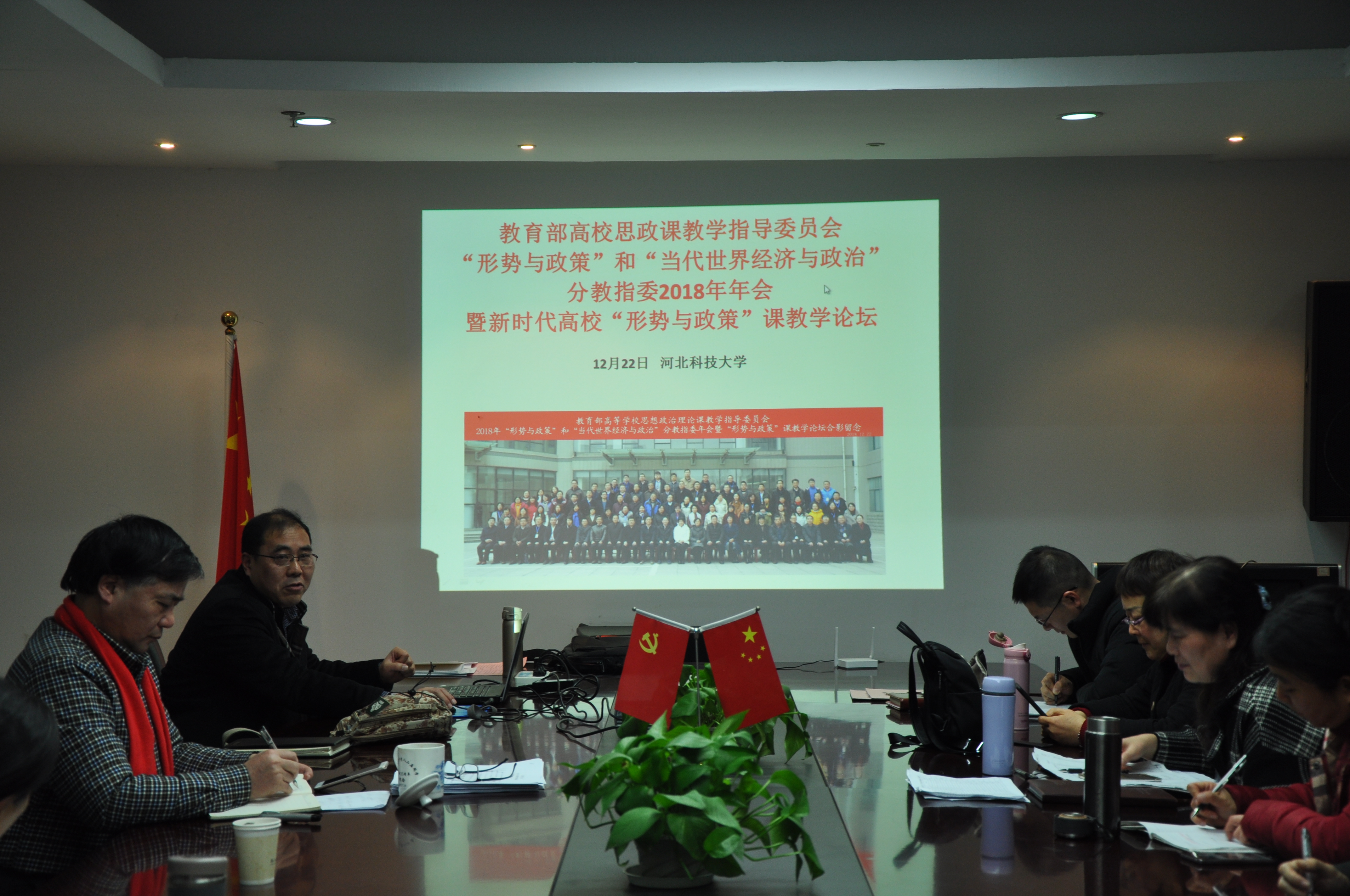 徐孝明于2018年12月12日在河北科技大学参加了由教育部高校课教学指导委员会举办的“形势与政策”和“当代世界经济与政治”分教指委2018年年会暨新时代高校“形势与政策课教学论坛”。徐孝明老师首先介绍了本次论坛的背景、主题、内容,然后就目前“形势与政策”课程建设现状、聚焦问题以及建设的思路进行了深入的剖析,徐孝明老师认为当下着力提升这门课程教学内容的品质一定要实现“三结合”,即教育部、学校与学生的三方结合。傅德田老师于2018年11月30日在辽宁大连参加了“第二届全国高校思想政治理论课案例教学研讨会”。傅德田老师认为一定要基于本土的探索实现“案例教学法的中国化”,遵循研发案例诸原则探索“案例编写的方法论”,从“设计-实施-总结”三环节等途径探寻“案例教学的模式”以及通过评价体系等研究加强“案例教学法研究”。此外傅德田老师还于2018年12月15日在山东青岛参加了主题为“伦理学与美好生活”的2018中国伦理学大会,并就十九大以来社会主要矛盾的转变为切入点作了详细的交流。王康老师就参加了在福建福州举办的“中国伦理学会地方高校德育专业委员会2018年年会暨学术研讨会”,她详细介绍了该论坛的主题以及会议情况。张坤老师于2018年12月22日参加了在河北保定举办的“我心中的思政课”第二届河北省高校大学生微电影展示活动颁奖典礼暨高校思政课微电影教学改革论坛”,张坤老师首先从思政课教师三走进(党建品牌)、教学方法、读经悟典讲述了要从“进一步发挥学生的主体性”来进行微电影教学,并建议我们马院在今后的教学特色和品牌上一定要凝练和打造自己的品牌。顾青青老师分别于2018年12月1日和2018年12月29日参加了由全国高校马克思主义理论学科研究会和中共浙江省委宣传部、浙江大学主办的“改革开放与新时代中国特色社会主义”学术研讨会和主题为“中国道路、中国理论和中国话语”的研讨会,顾青青老师认为会议的举办一定要邀请到一些学科领域大咖级别的人物,有助于形成高层次、高水平的对话。金紫薇老师于2018年11月23日在上海师范大学参加了“中华传统美德与社会主义核心价值观融入德育课程学术研讨会”,就上海市“课程思政”开展情况金紫薇老师做了详细介绍,另外金紫薇老师将自身2018年11月在日本信州大学的访学情况于大会上做了交流,主要将日本的人文科学研究氛围与我国进行了比较。石然老师近期在延安大学参加了“共产主义观念及其当代艺术的表征”研讨会,还在井冈山大学参加了会议,接受两个革命根据地的红色洗礼,石然老师感触颇深,就十九大提出的“习近平新时代中国特色社会主义思想”石然老师认为,作为一名思想政治教育课专职老师,大家一定要在课堂上传播正能量,坚定地维护党和国家的路线方针政策。最后,余龙进老师也就自己近期参加的“改革开放40年与新时代思想政治教育学科创新发展高端论坛”、“马克思主义中国化:历史进程与基本经验”高端论坛和“《共产党宣言》与新时代中国道路”高端学术研讨会与大家作了分享。