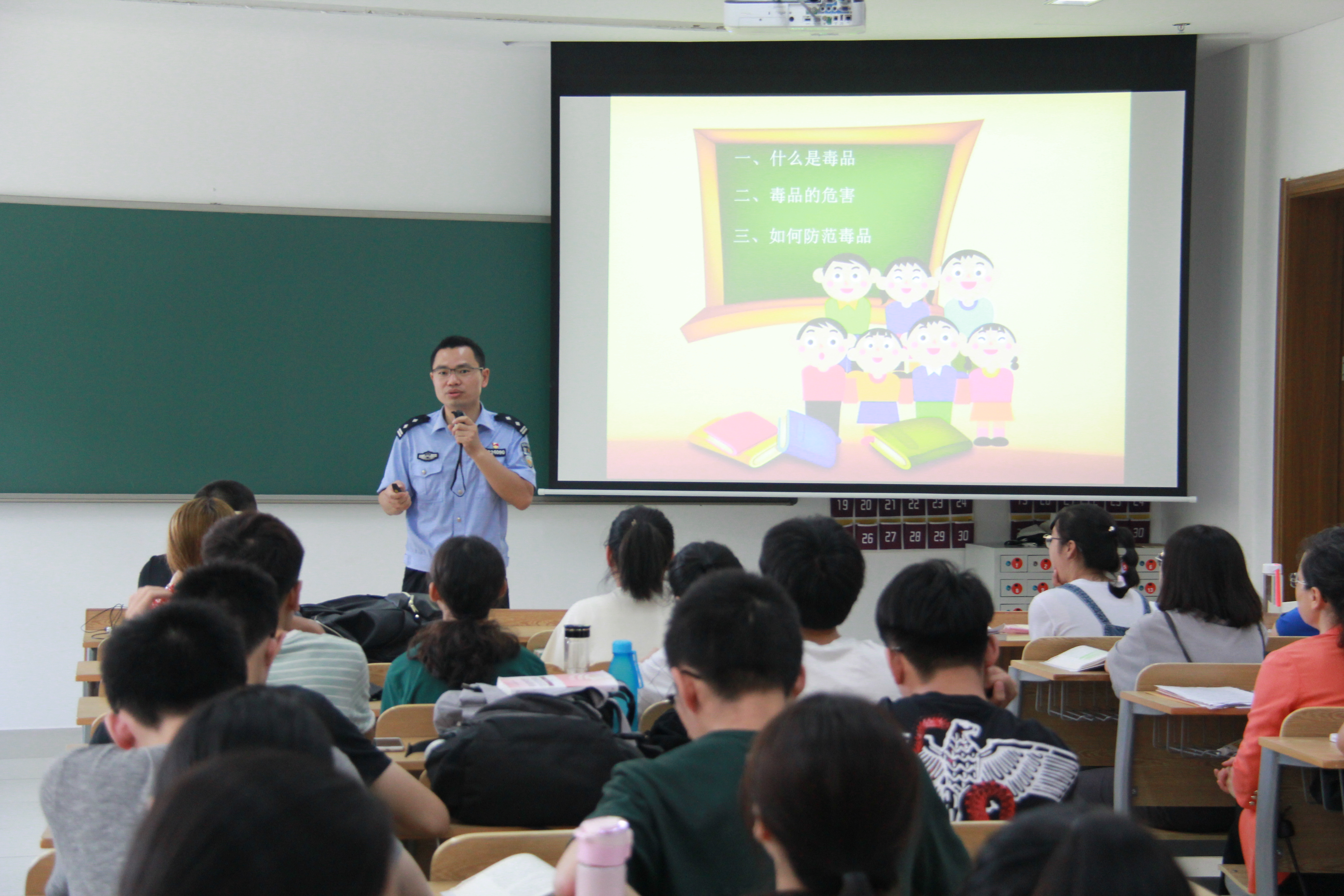 同一时间,在王康老师的课堂,黄周青警官也给大家做了禁毒教育宣讲活动。