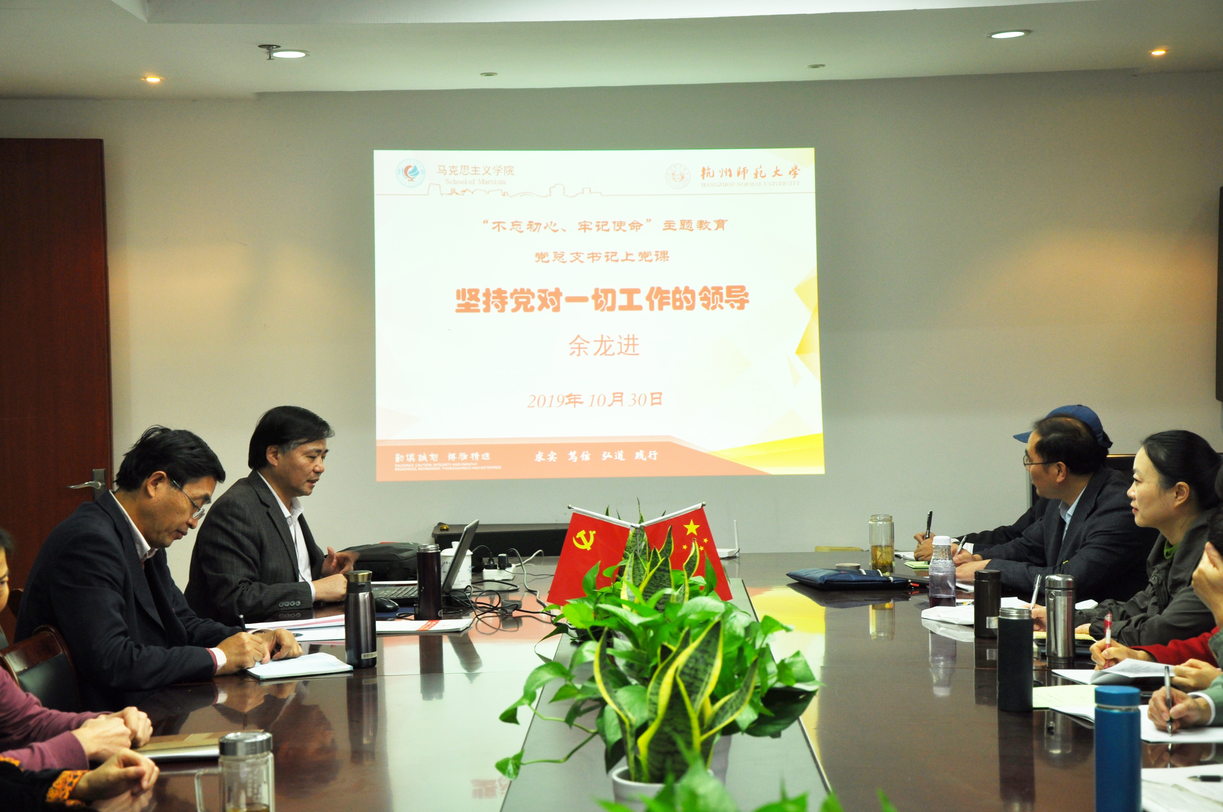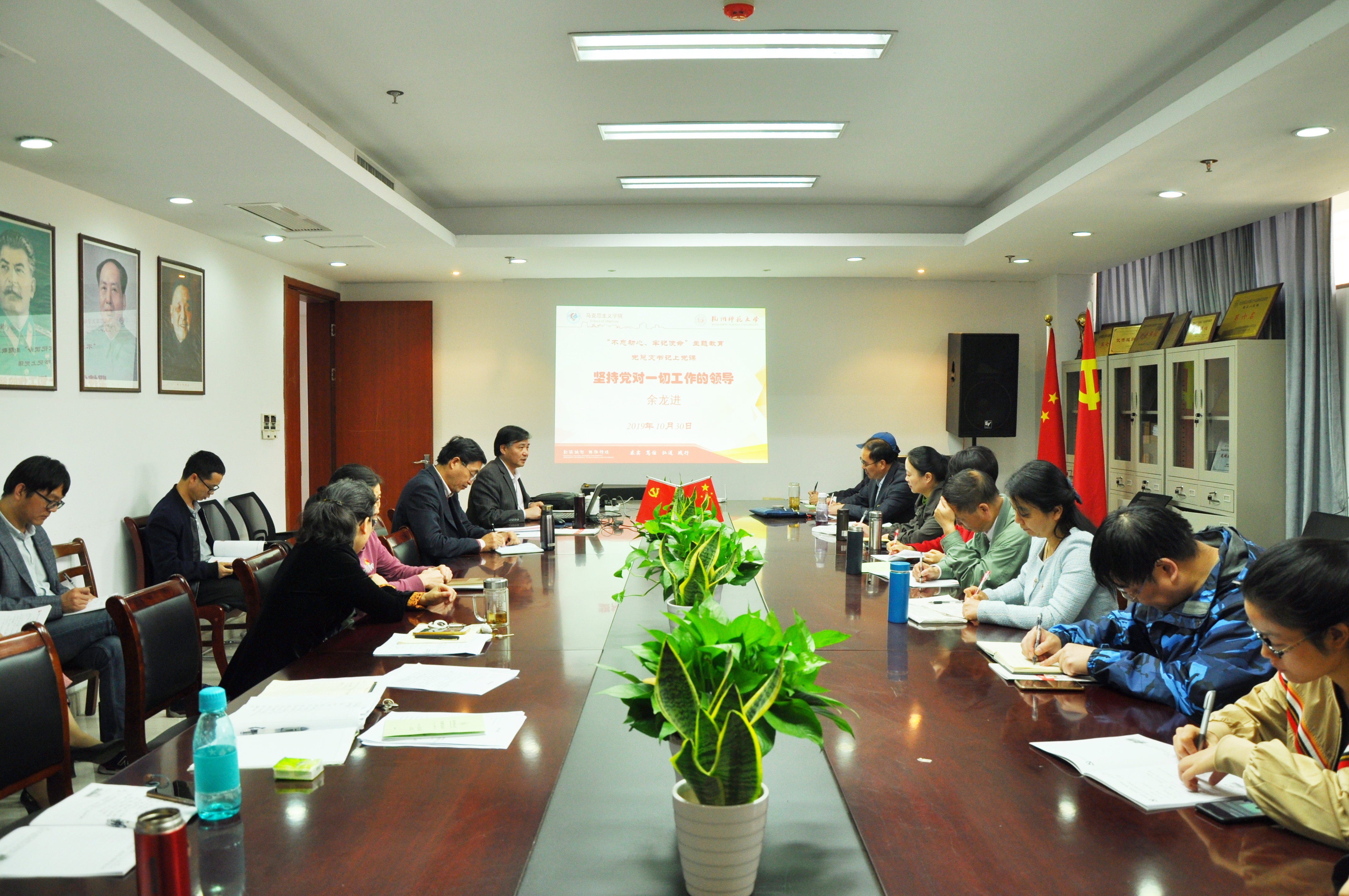 为进一步深化“不忘初心、牢记使命”主题教育学习,积极贯彻中共中央党史和文献研究院编辑的习近平总书记《论坚持党对一切工作的领导》一书的精神,10月30日下午,日本色情片 党总支书记、院长余龙进教授以“坚持党对一切工作的领导”为主题,给全体党员讲授党课。校纪委副书记、纪检监察室主任黄燕参加党课。