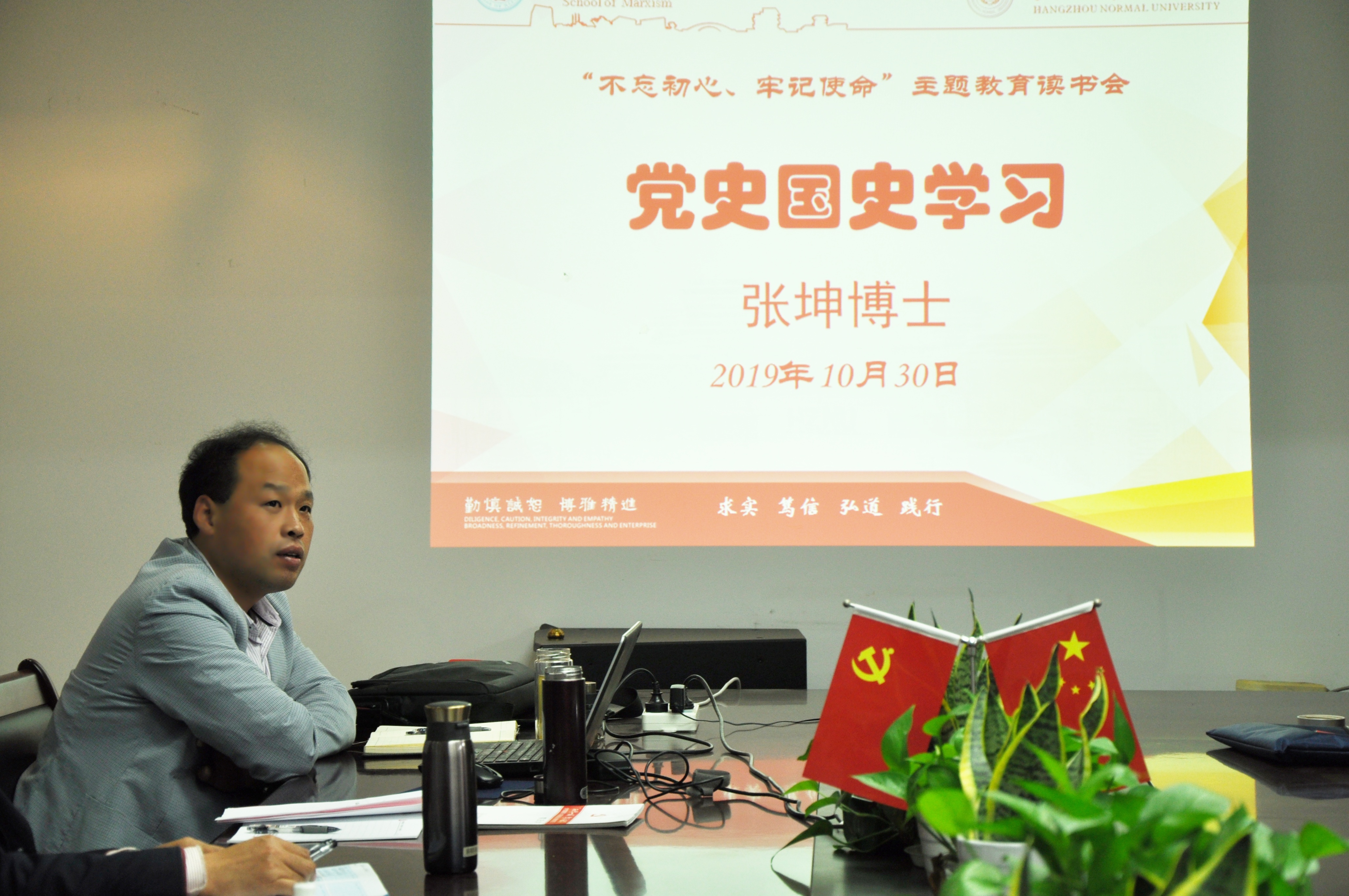 10月30日下午,日本色情片 党总支开展“不忘初心、牢记使命”主题教育读书会,组织全体党员集中学习中国共产党历史和中华人民共和共国史,学院全体32名党员参加,读书会由学院教工第二党支部书记、纲要教研室主任张坤博士作主要发言,学院党总支书记、院长余龙进主持并讲话。