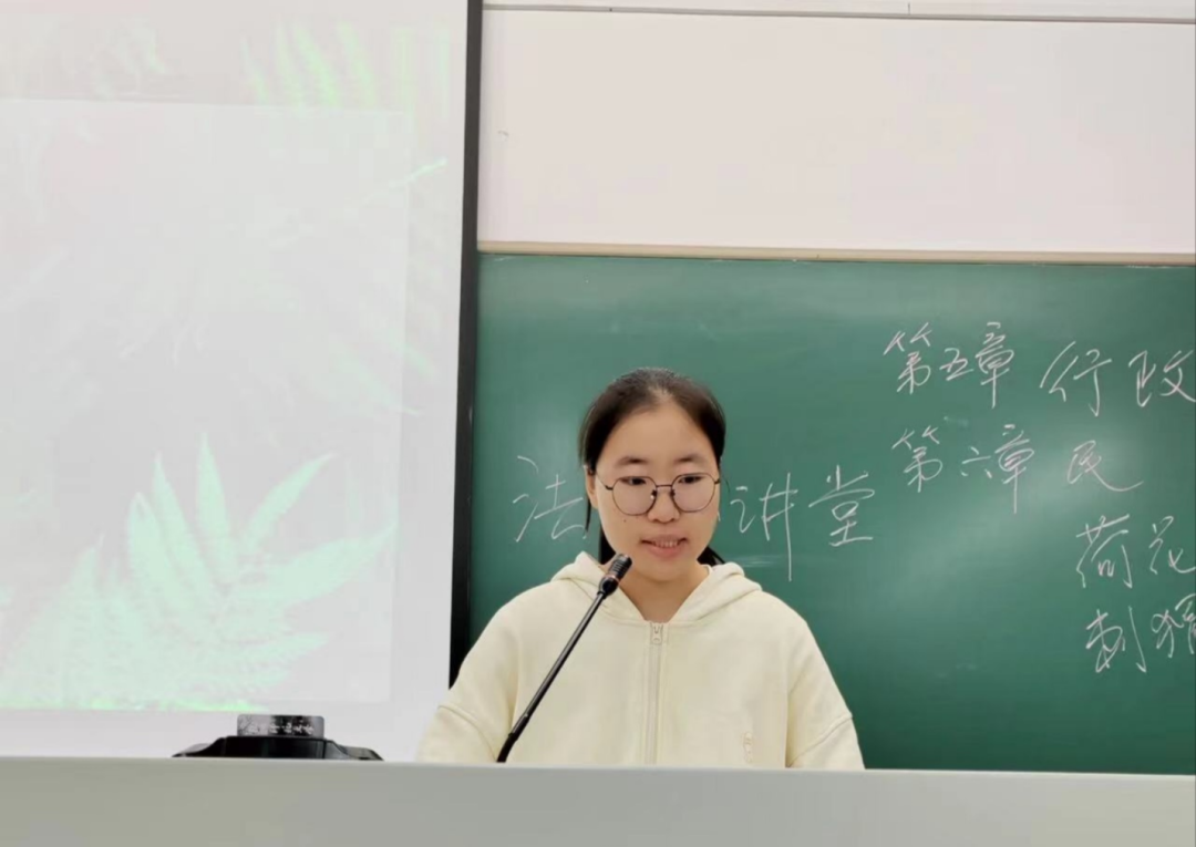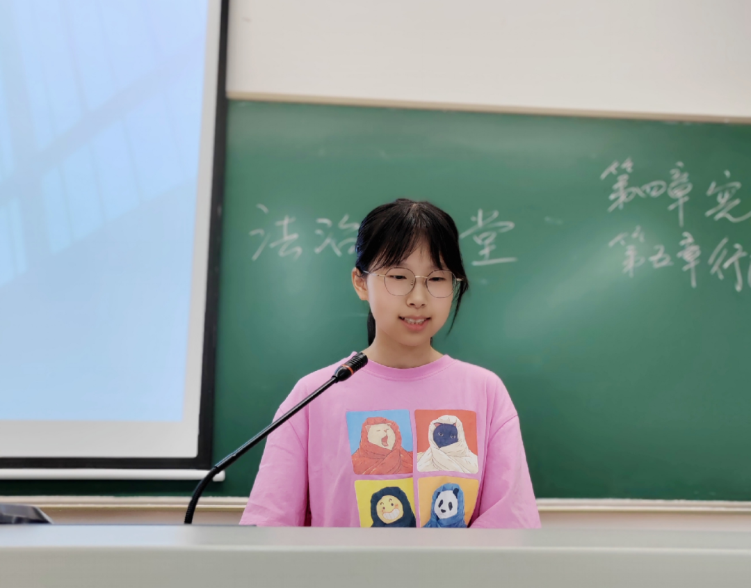 莫妍翌:法治小讲堂活动不仅提高了同学们的课堂参与度,而且“润物细无声”,在每一次的分享中,同学们慢慢提高了自己的法治素养,丰富了自己的法律知识,充分认识了学法用法的重要意义,增强使命感。这是非常具有教育意义的活动。