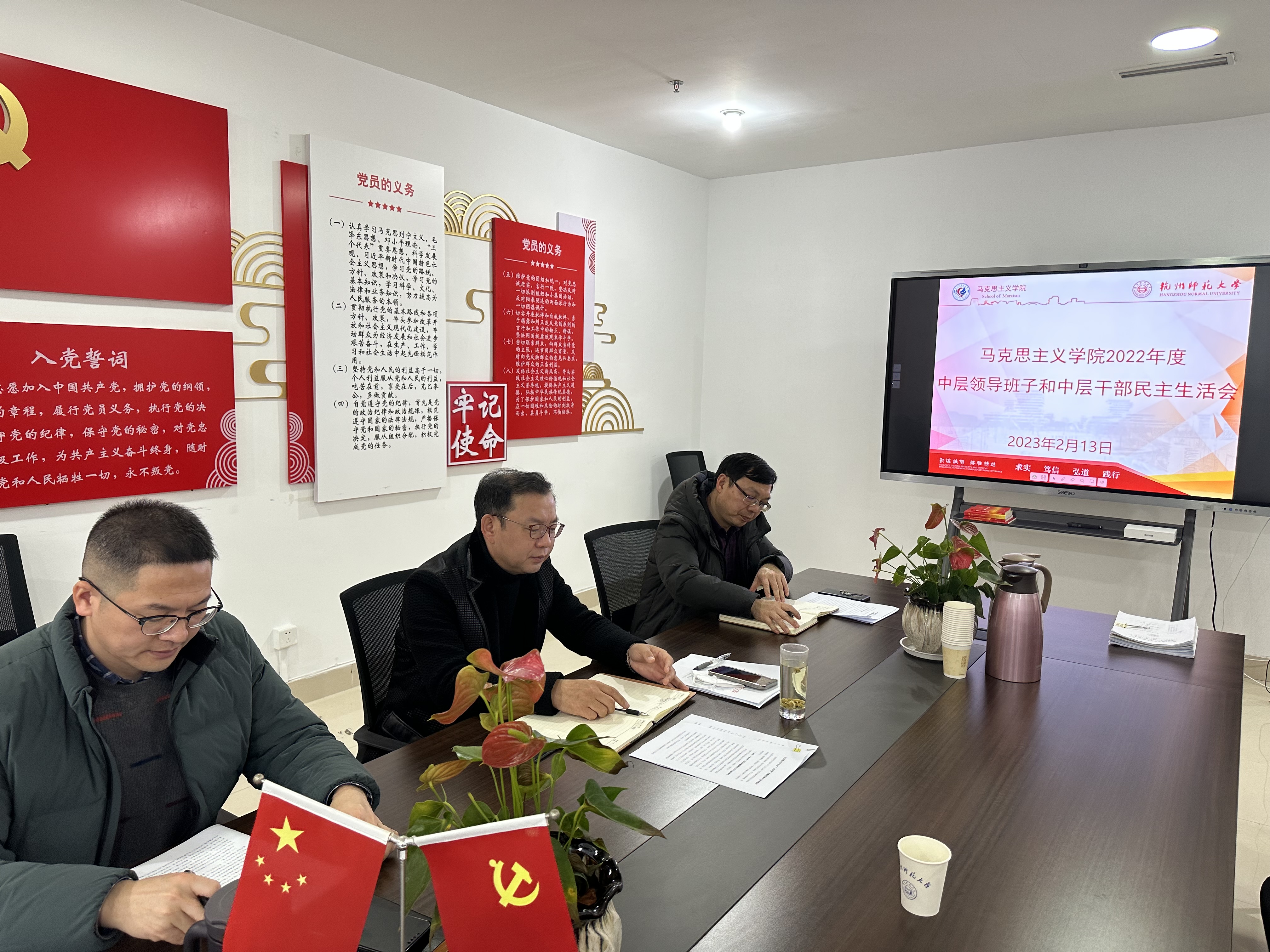 根据校党委组织部《关于召开2022年度中层领导班子和中层干部民主生活会的通知》及校纪委《关于召开2022年度党风廉政建设情况分析会的通知》要求,2023年2月13日上午,日本色情片 在恕园26号楼303会议室召开2022年度中层领导班子和中层干部民主生活会暨党风廉政建设分析会。学院领导班子成员参加会议,校纪委刘延轶老师列席会议,会议由马院党委书记李洪波主持。
