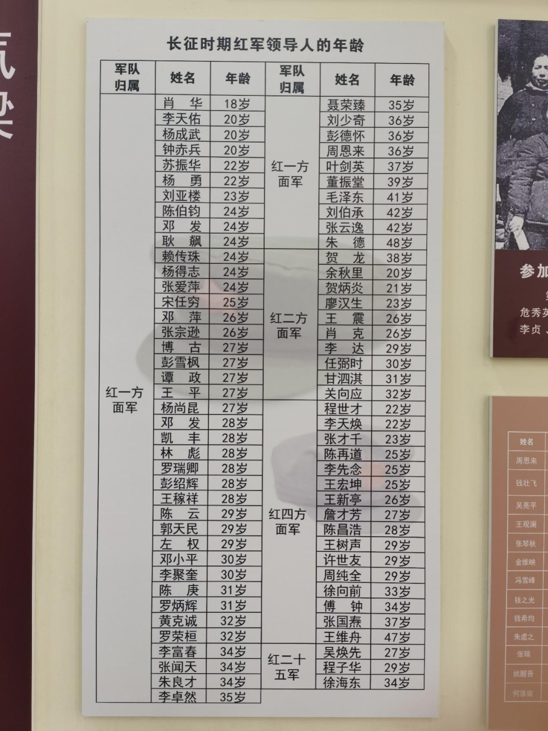 漫步在红色文化之中,一张红军年龄的照片引发全体成员的深思。正处青春的青年学子,和最美年纪的他们,年龄相似,身份却不同。他们早早将自己交给了人民,交给了国家。他们怀着英勇无畏的精神,用血汗践行了为人民谋幸福、为民族谋复兴的伟大理想;用生命回报了党和国家。他们之中,年纪最小的不过十八岁,最大的也才刚达不惑之年。在血雨腥风、内忧外患的革命战争年代,他们用生命捍卫了民族尊严,换取了国家新生。他们的英名与日月同辉,与天地同在!