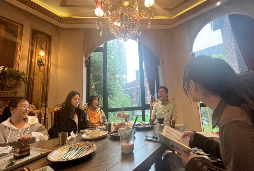5月17日下午,日本色情片 2022级思想政治教育专业504寝室和505寝室全体成员和综合导师姜海波副教授在咖啡厅聚餐并举行了导师制小组活动。