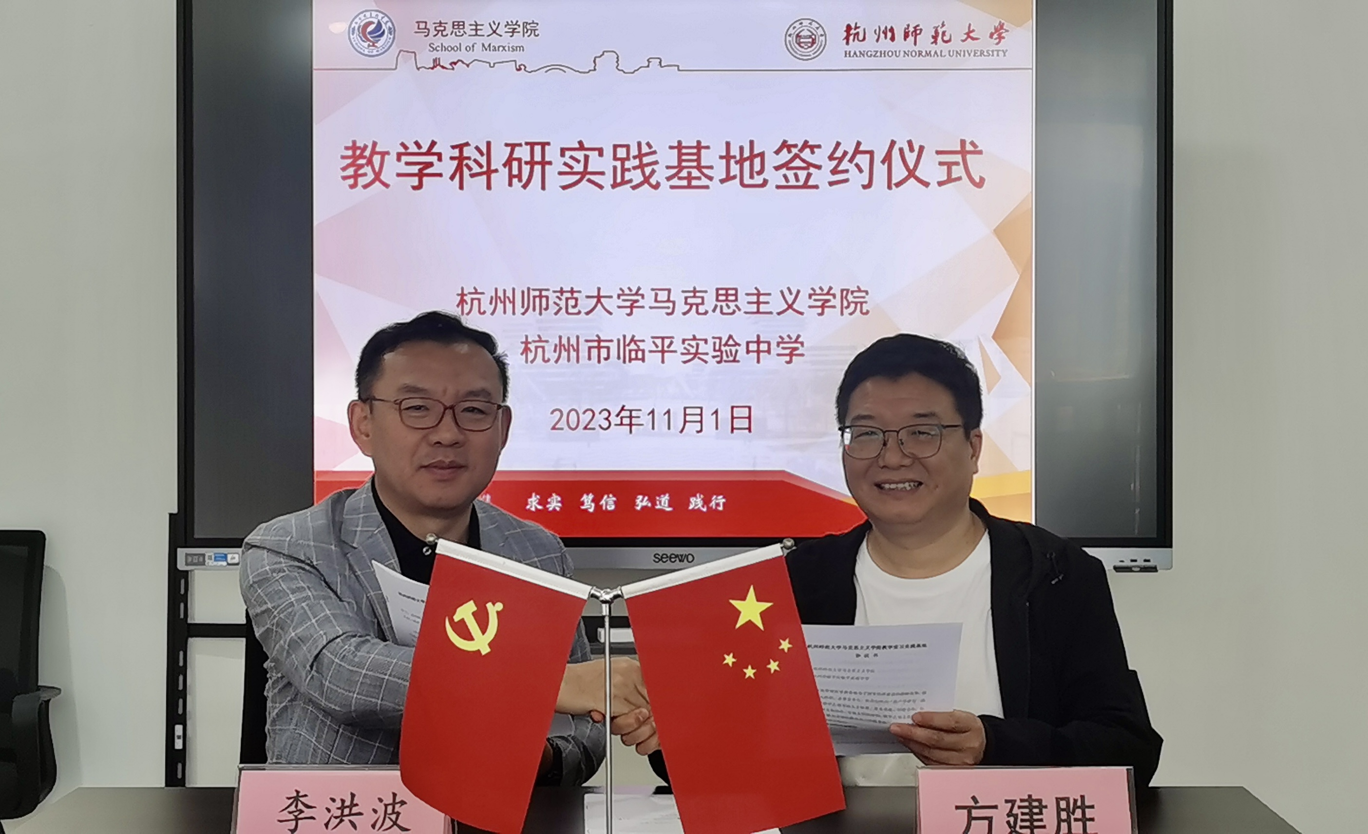 11月1日上午,日本色情片 与杭州市临平区临平实验中学举行党建联建、大中小学思政课一体化、教育实习实践基地建设签约及授牌仪式。