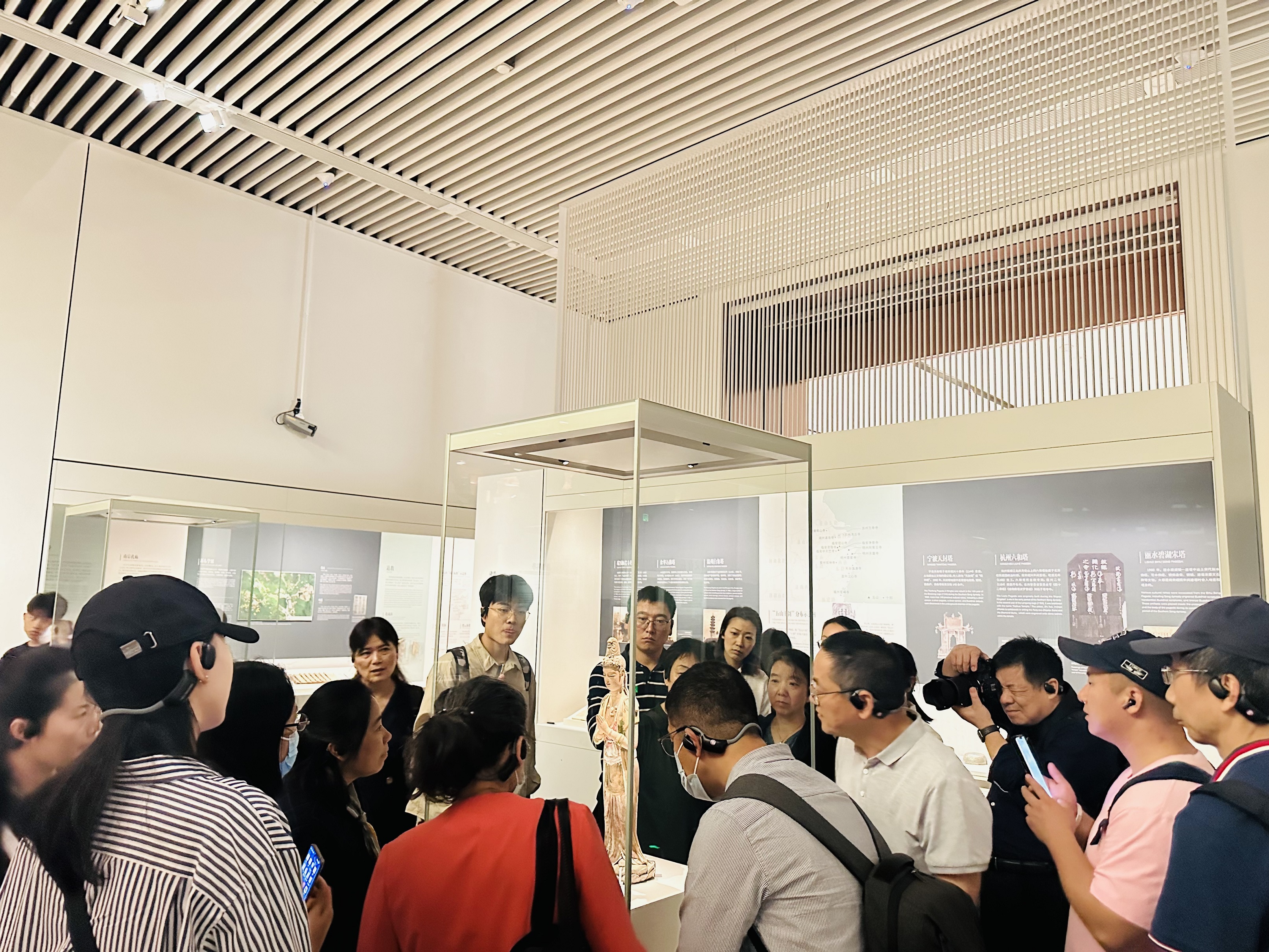 浙江博物馆之江新馆展览策划以“思想高度、学术深度、人文温度”为原则,构建了“159”多样化的展览体系。现场,教师党员们一起参观了《浙江一万年》通史陈列,5个浙江文化专题陈列,9个功能拓展和体验陈列,特别是四万工轿、富春山居图、闸口白塔等展示,突出彰显浙江的辉煌历史与精神文脉,让广大教师党员进一步感受浙江悠久的青瓷文化、古琴文化、宋韵文化、书画文脉和民俗文化,感叹浙江文化的博大精深、源远流长。