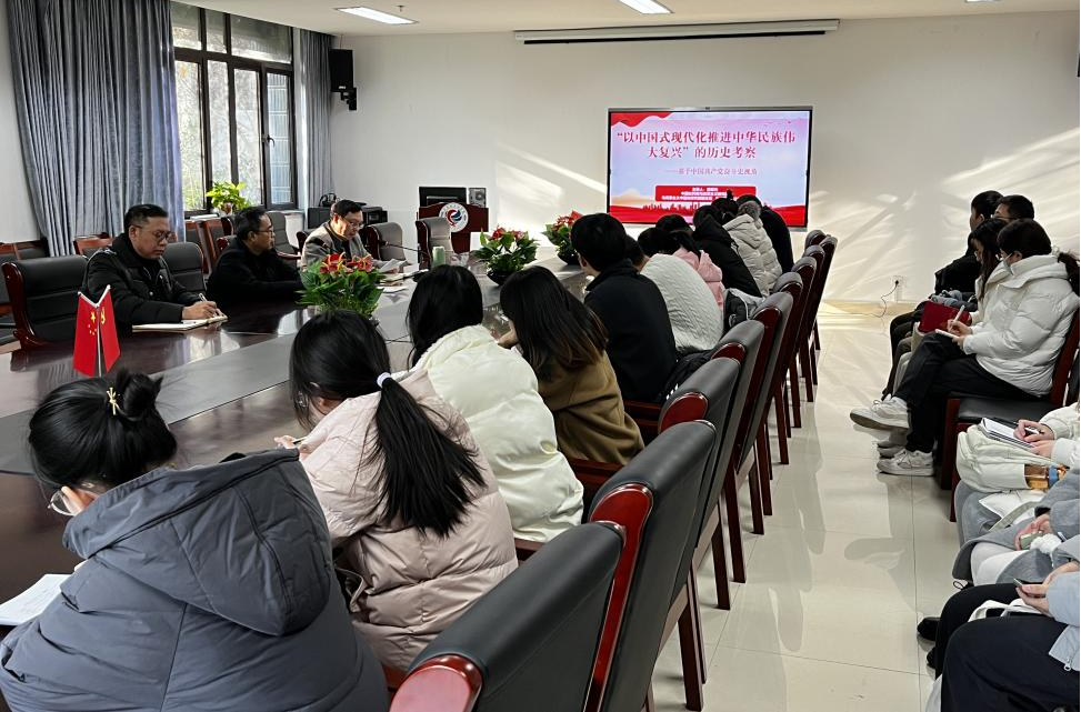 讲座以“中国式现代化推进中华民族伟大复兴”为命题,借助中国共产党百年奋斗历史的视角,从问题的提出、历史缘起、历史内容的演进、重大政治论断生成的原因分析四个方面加以阐述。