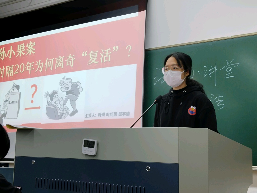 第四组:思政233班的叶琳、叶问雨、吴宇情同学,带来案例:孙小果案件是一起严重的刑事案件,涵盖了多个罪名。1995年,孙小果因犯强奸罪被判处有期徒刑三年,其父母通过伪造病历帮助孙小果非法取保候审、保外就医,导致其未执行刑期二年四个月又十二天。1998年,孙小果因犯强奸罪等罪,数罪并罚,一审被判死刑。然而令人震惊的是,20年后的2019年,孙小果再次犯下严重罪行。他因故意伤害案被逮捕。公安机关调查发现,孙小果注册有多家公司,经营多家酒吧夜店,是一个涉黑涉恶团伙的成员,他们做着诸多违法犯罪勾当,包括开设赌场、放高利贷、非法拘禁、故意伤害等。