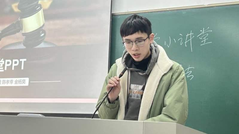 陈孝幸同学:通过这次法治小讲堂的以案说法,我有了一些体会。首先我认为法治小讲堂的举办,不仅能够向同学们讲述法律条文,还能通过一些现实中事实发生的案例让课本上的法条变得更加生动。其次这次讲堂很好了提升了我在人群面前的发言能力,对我演讲水平也是一个提升。法治小讲堂也可以培育我们的法治思维,通过案例中当事人的违法行为来警示我们做一个合格的中华人民共和国守法公民。