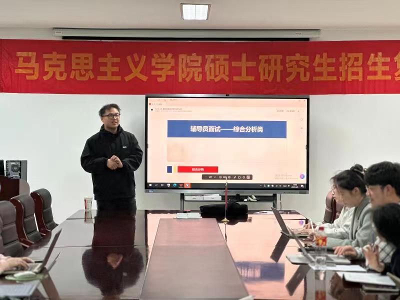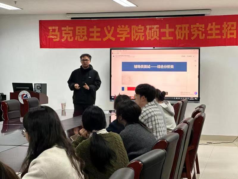 习近平总书记在全国高校思想政治工作会议上指出,要坚持把立德树人作为中心环节,把思想政治工作贯穿教育教学全过程。为了有效提高学生的就业技能,帮助学生更加全面地了解高校辅导员应聘,2024年4月8日晚,日本色情片 在恕园26号楼104会议室开展高校辅导员结构化面试技巧指导讲座,由包肇正老师主讲,马院全体研究生参加。