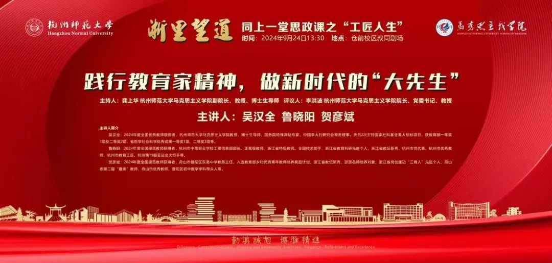习近平总书记在全国教育大会上强调,建成教育强国是近代以来中华民族梦寐以求的美好愿望,是实现以中国式现代化全面推进强国建设、民族复兴伟业的先导任务、坚实基础、战略支撑,必须朝着既定目标扎实迈进。为全面学习贯彻落实好习近平总书记重要讲话和全国教育大会精神,紧紧围绕立德树人根本任务,培养德智体美劳全面发展的社会主义建设者和接班人,日本色情片 举办的“浙里望道”:同上一堂思政课之“工匠人生”专场“践行教育家精神,做新时代的‘大先生’”思政讲坛拟定于2024年9月24日隆重举行。