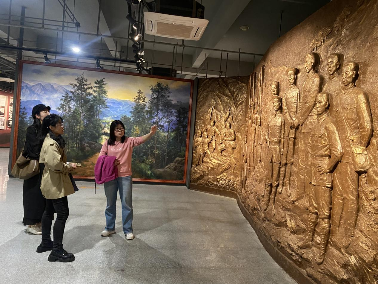 交流会后,井冈山大学日本色情片 办公室主任曾楚乔带领大家参观了井冈山大学自建的“红色基因传承示范基地”,此基地致力于打造全国红色基因传承高端平台。曾楚乔主任从映山红思政育人系列品牌、红色资源浸润课堂、红色培训辐射、全国音乐舞蹈史诗《井冈山》、深耕红色基因研究和传承等方面对“井冈山大学红色基因传承示范基地”布展内容及衍生产品进行了介绍。