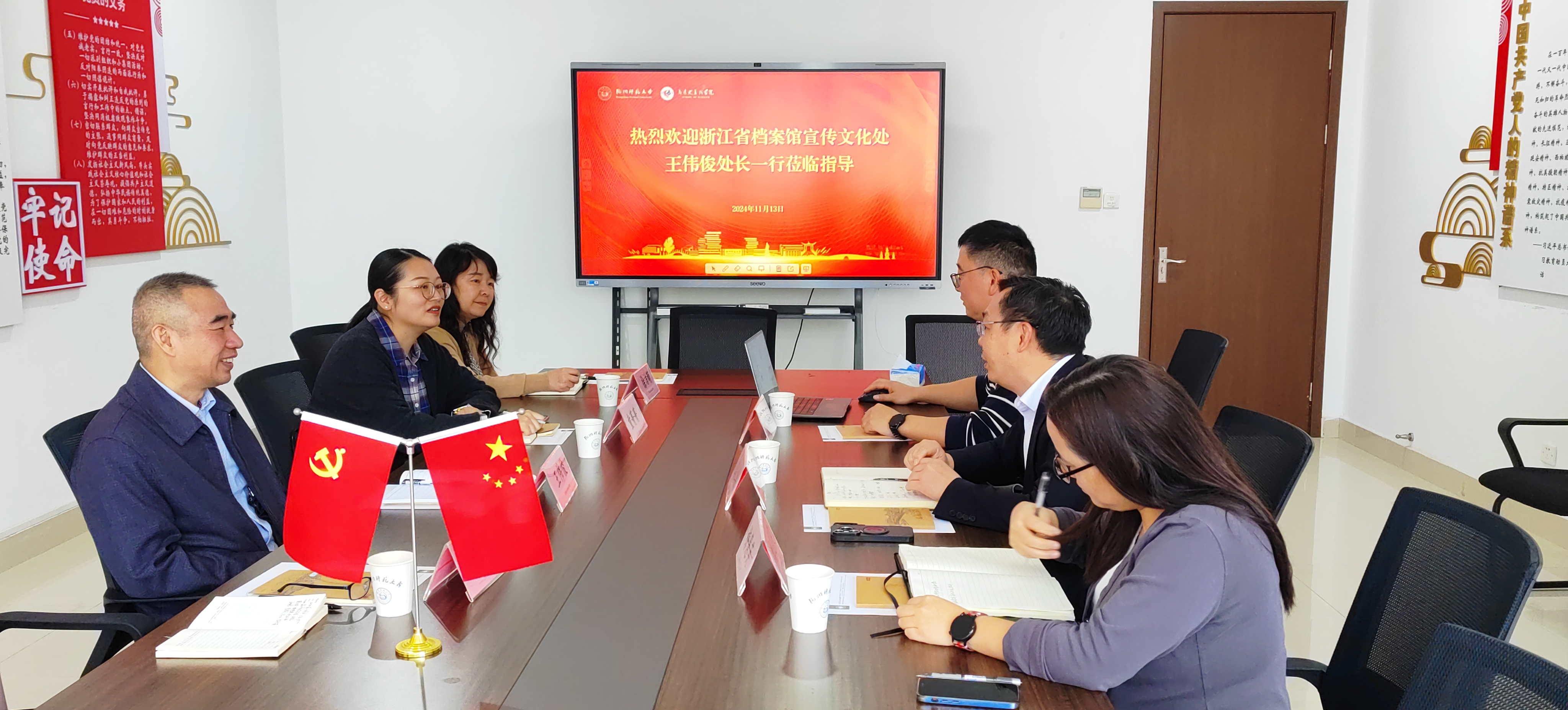 11月13日,浙江省档案馆宣传文化处处长、一级调研员王伟俊带领处室团队一行4人到我院调研“浙里望道”思政品牌建设及洽谈思政大课合作等领域的工作。马院党委书记、院长李洪波、副院长龚上华参与了交流。马院教务科科长梅慧英、办公室主任倪龙海与会座谈。