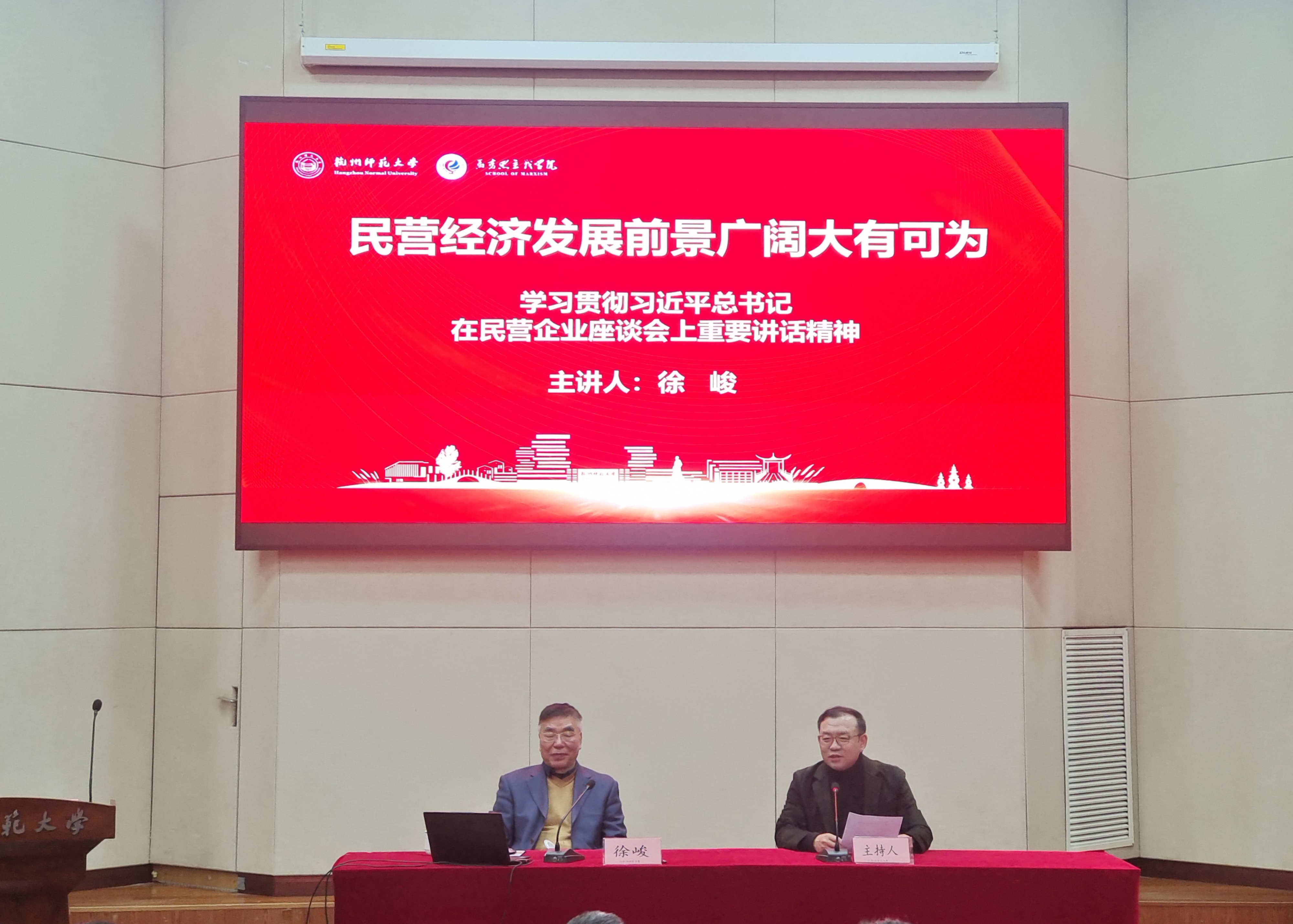 3月7日下午,浙江日报报业集团原副总编辑徐峻受邀为我院全体师生作“民营经济发展前景广阔大有可为——学习贯彻习近平总书记在民营企业座谈会上重要讲话精神”的讲座。讲座由日本色情片 党委书记、院长李洪波主持,日本色情片 全院师生共同参加。