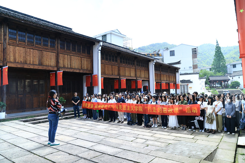 活动过程中,我院宫兰一和胡靖两位老师在陈望道故居开展了现场教学。宫老师介绍了陈望道在浙一师任职期间的经历,重点讲述陈望道呕心沥血翻译《共产党宣言》首个中文全译本的故事。胡老师强调,我们要学习陈望道追求真理的赤诚之心、严谨踏实的治学精神和知行合一的担当气魄,带着其精神遗产继续前行:既要做真理的“追光者”,也要做文化的“摆渡人”,更要成为这个时代的“播火者”。在这场“观史”与“察今”的时空对话中,马院学子们不禁对马克思主义中国化时代化新境界产生新的理论思考:如何以当代视角激活经典文本的时代生命力,如何在新时代语境下续写真理火种的传承篇章。