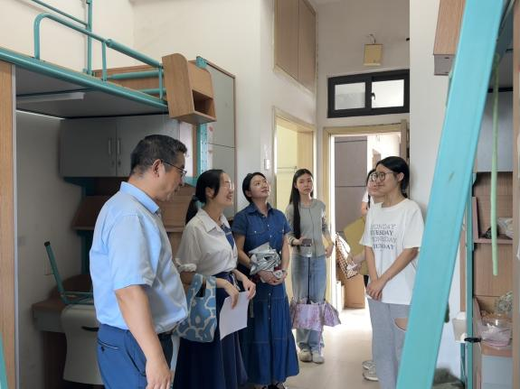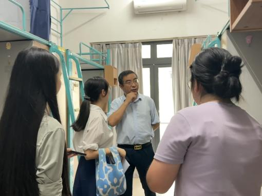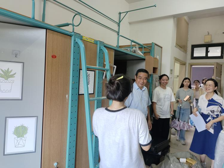 搬迁期间,学院老师们心系学生,亲临现场指导工作,与同学们密切交流。6月27日下午,日本色情片 党委副书记胡祎赟,思政231班班主任罗晶,思政232班班主任于颖,思政233班班主任杨雅杰,思政234班班主任张兰,以及思政2023级辅导员沈佩昕走访了学生寝室。