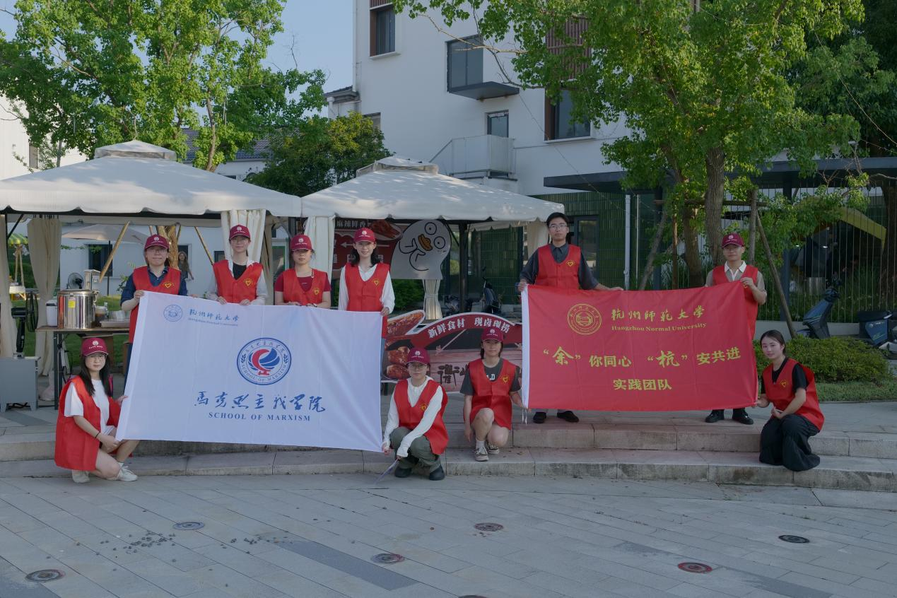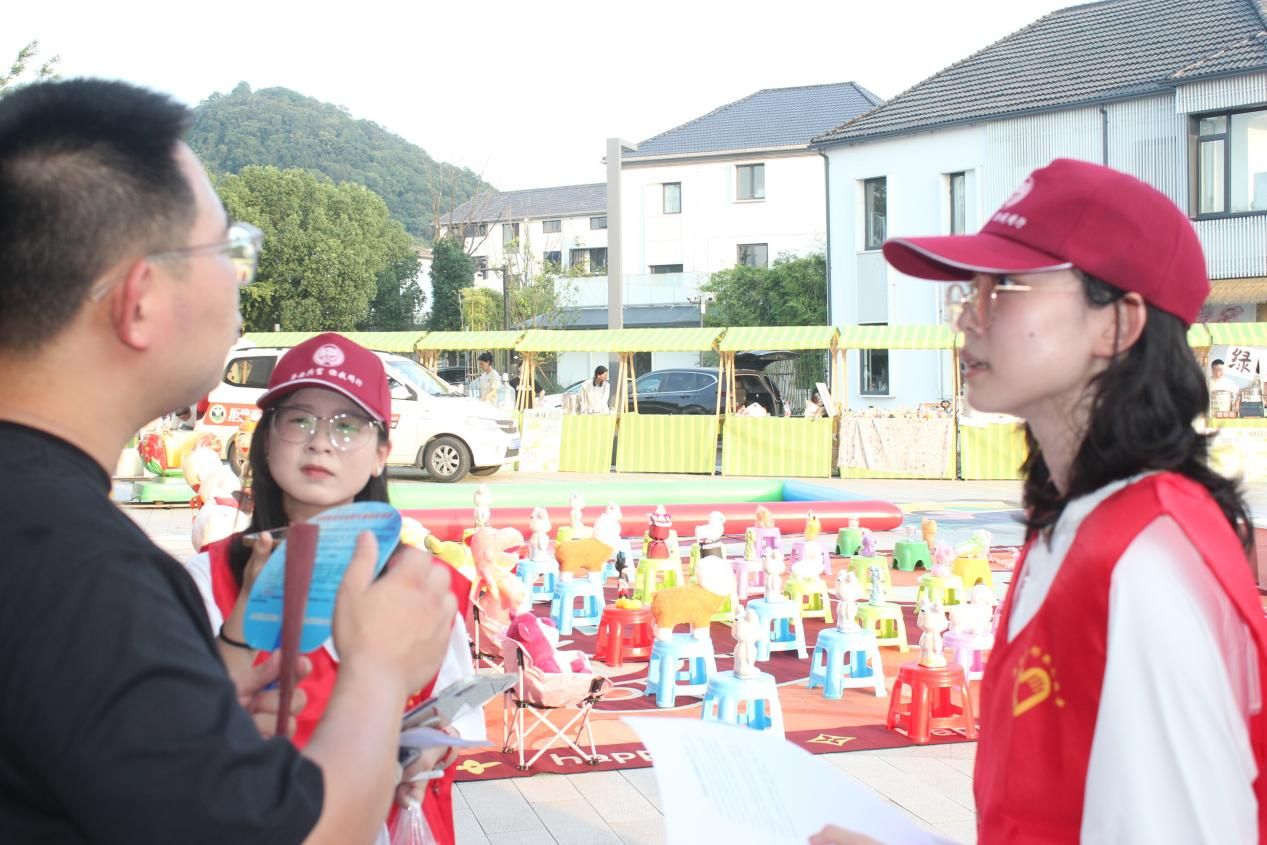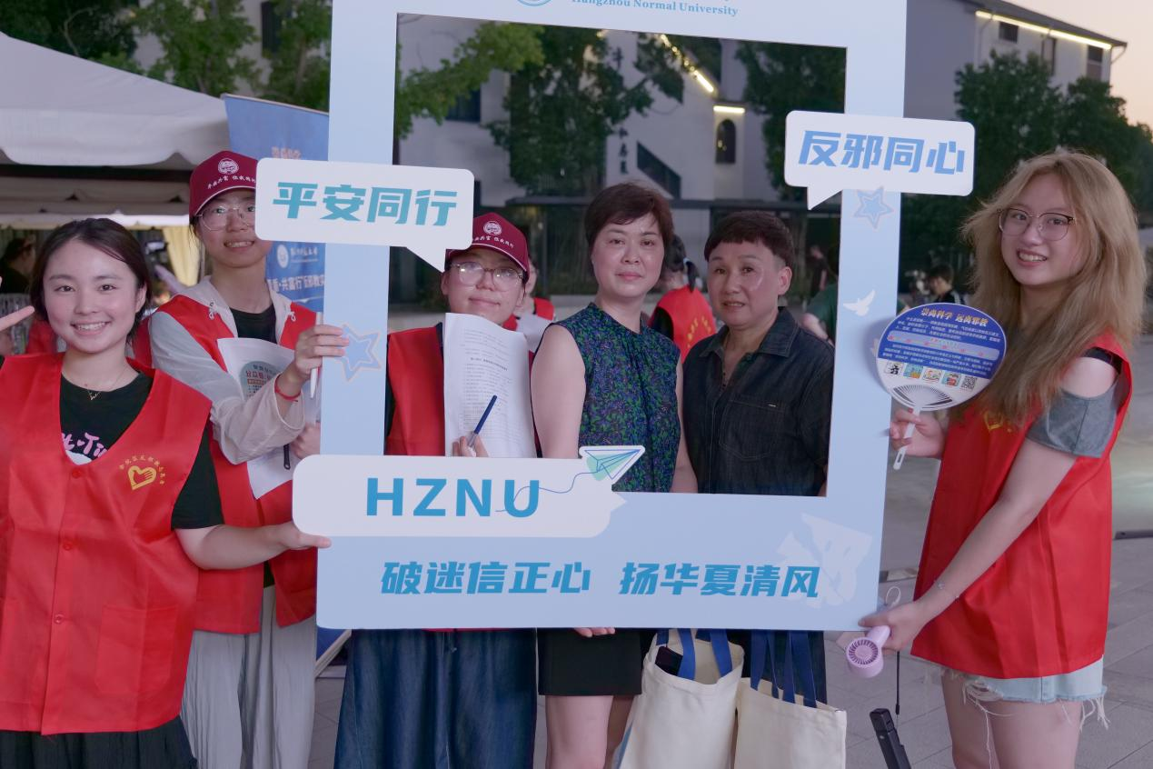 2025年7月5日傍晚,我院“余”你同行,“杭”安共富暑期社会实践团队10名成员,联合余杭区委政法委及社区工作者,在余杭区中泰街道跳头文艺集镇夜市开展反邪教主题宣传活动。
