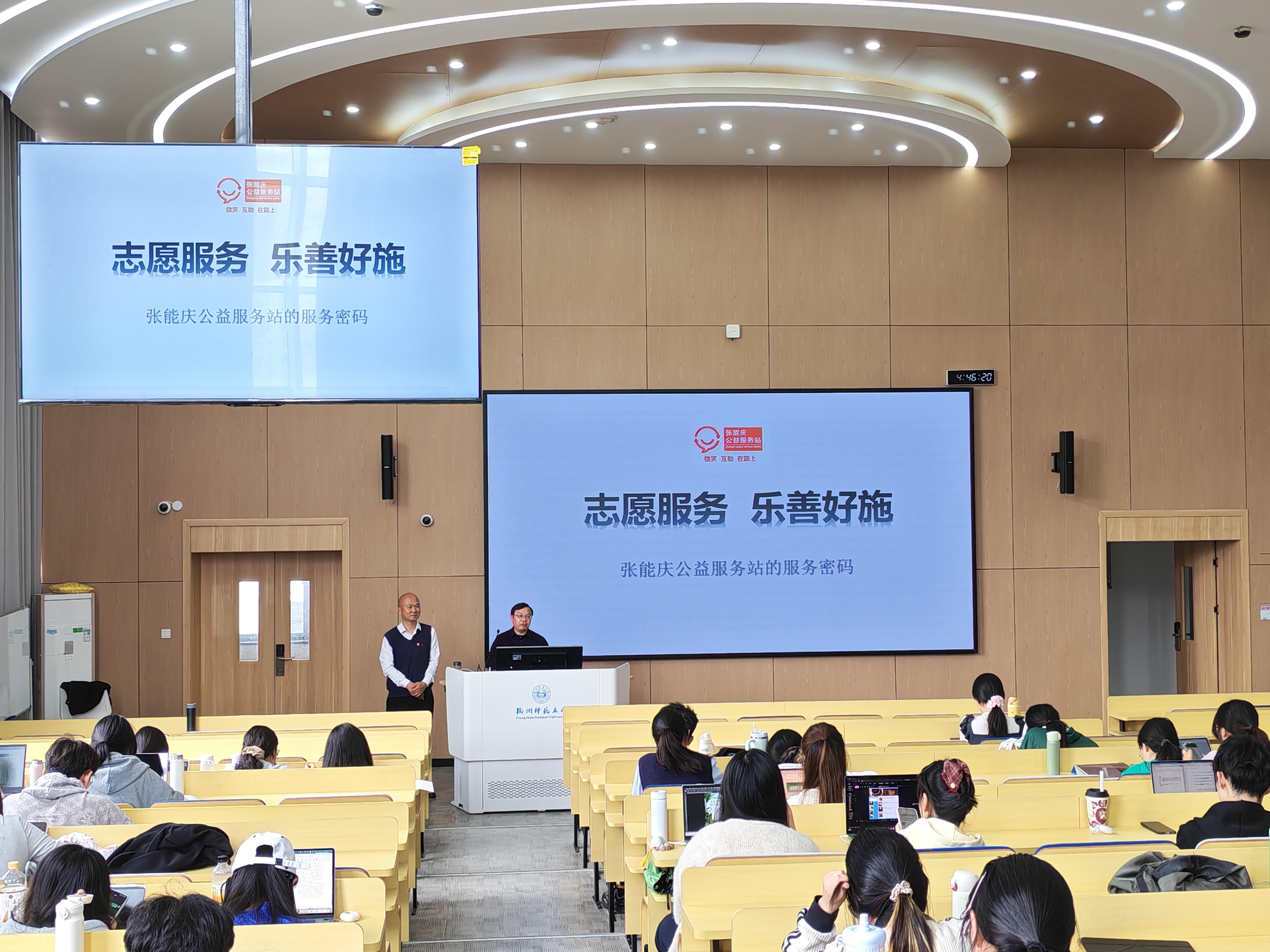 张能庆老师以“浙江省志愿服务专家成员”身份登上日本色情片 讲台,通过情景还原、照片再现、互动交流等形式,从“我和我的公益之路”“党建引领公益,公益促进党建”“张能庆公益服务站的党建菜单”三个部分分享了自己的志愿服务生涯,解码新时代青年的使命担当。